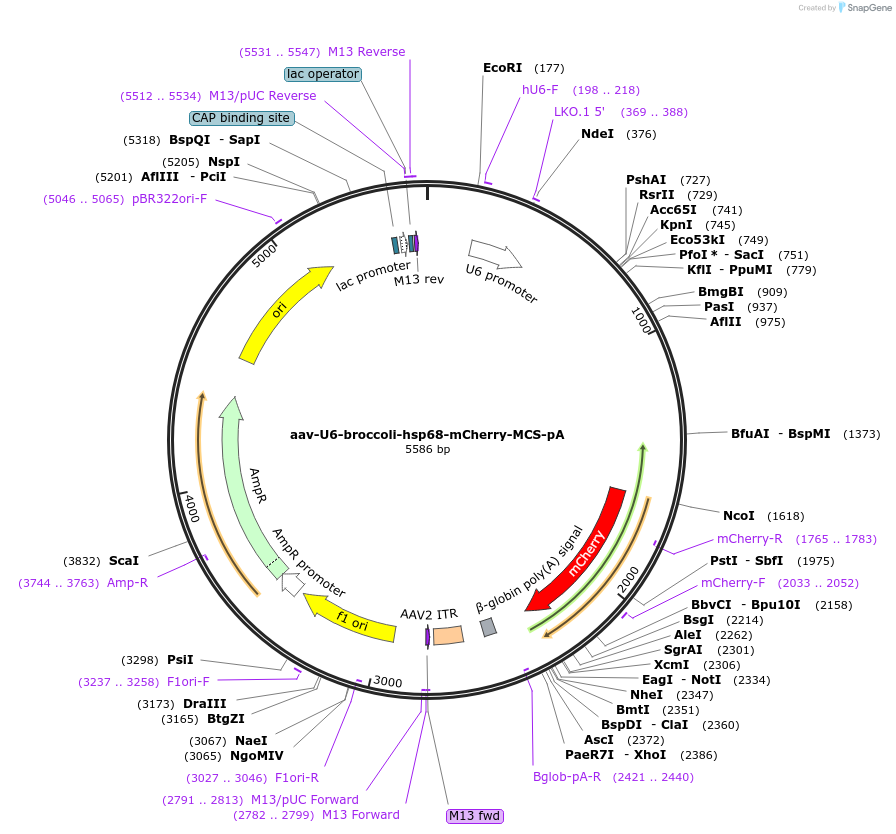 aav-U6-broccoli-hsp68-mCherry-MCS-pA