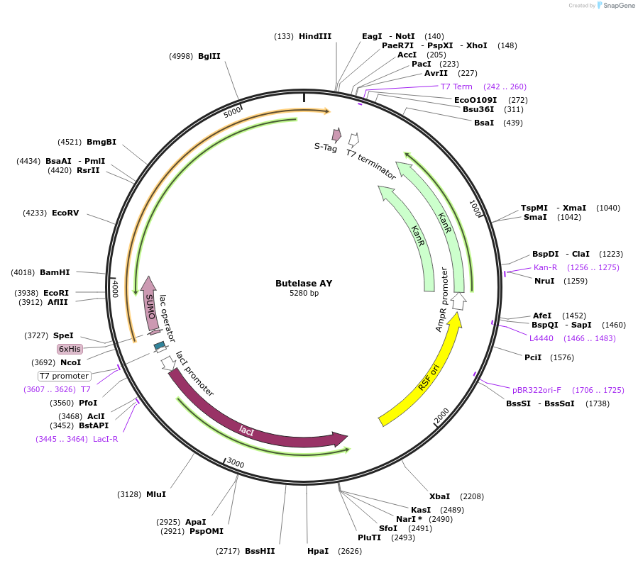 Plasmid#221847PurposeExpresses Butelase AY with Val237Ala and Thr238Tyr mutationsDepositorInsertButelase 1 ligase